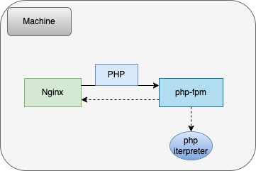 (因此,首先需要安装PHP和FastCGI进程管理器,例如php-fpm) - 通常情况下,PHP解释器会安装在机器本机上。当Nginx通过FastCGI协议与PHP解释器进行通信时,它会将请求转发到运行在本机的FastCGI进程管理器,然后再将请求转发到本机上运行的PHP解释器